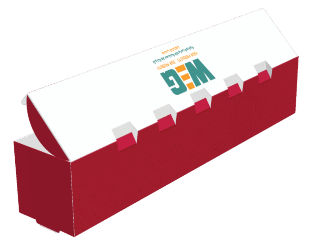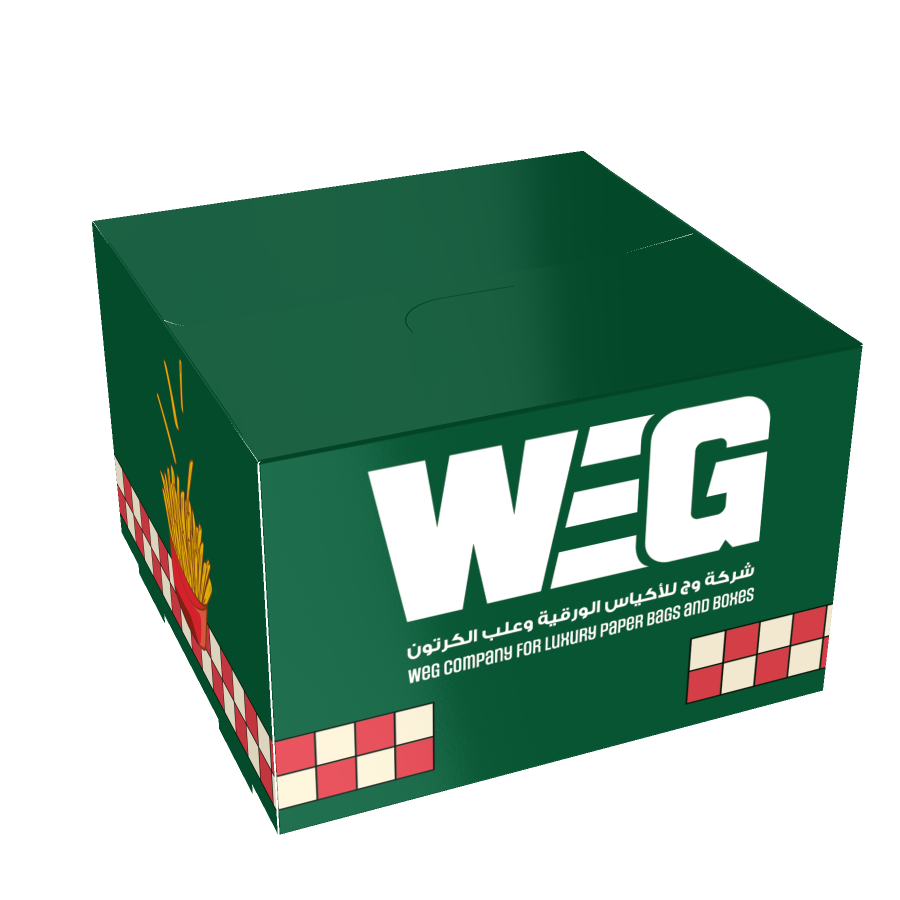 بوكس مربع، غطاؤه متصل مع ظهر البوكس لتسهيل الفتح والإغلاق، مع كبسات على خط الفتح لتثبيت الغطاء. مثالي للبرغر، الوجبات الفاخرة، أو المنتجات الأخرى.