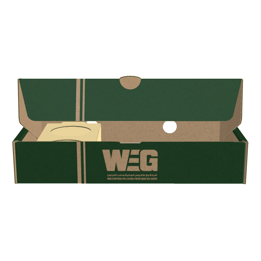 علبة مزودة بغطاء منفصل وشريط مع قفل حماية لتأمين المنتج داخلها. مناسبة لتعبئة الباستا، الأرز، الحلويات، الشوكولاتة أو أي وجبات ومنتجات أخرى. تصميمها يحافظ على شكل المنتج ويضيف لمسة فاخرة عند التقديم.